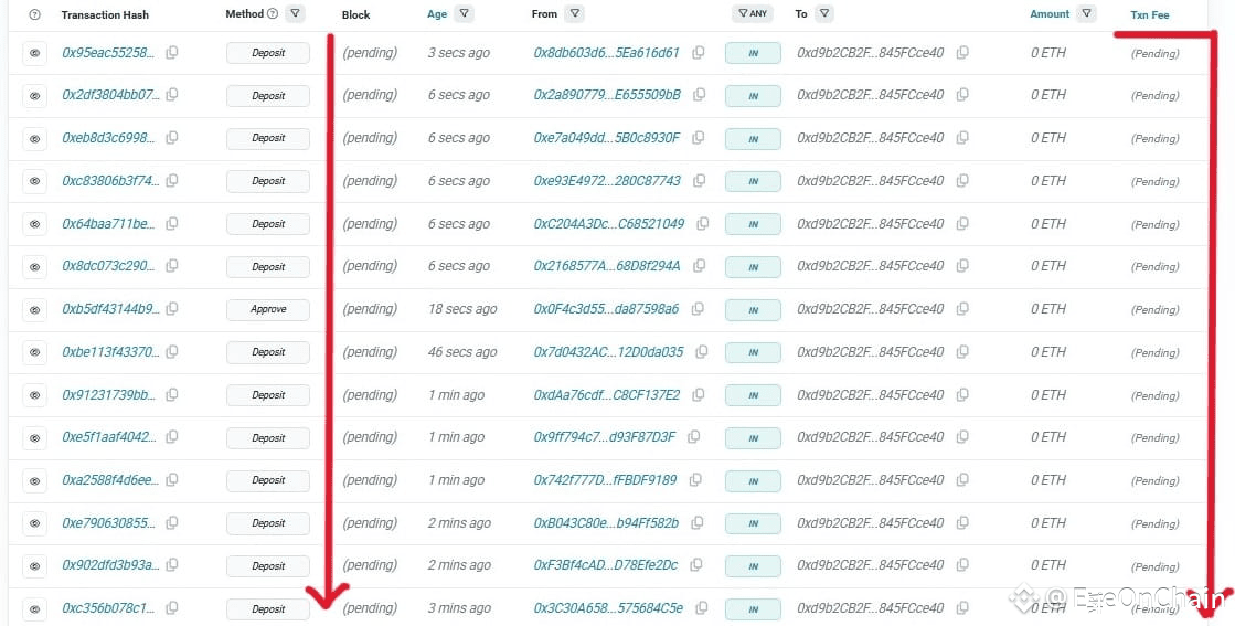 Within just five minutes, deposits from over 5,000+ addresses have blasted past $100 million, clogging up the network in true degen fashion.