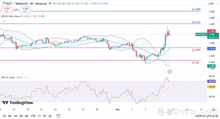 If DOT conquers $3.61, the $4.00 psychological barrier comes into view. Contrarily, failure to close above $3.30 or a drop below $3.19 could invite short-term profit-taking. Which could send DOT back toward $2.85 for a retest. If bearish volume creeps in, the fall may stretch to $2.46, but the bullish bias dominates until proven otherwise. As long as buyers hold the $3.19 level, DOT’s upward potential remains very much alive.