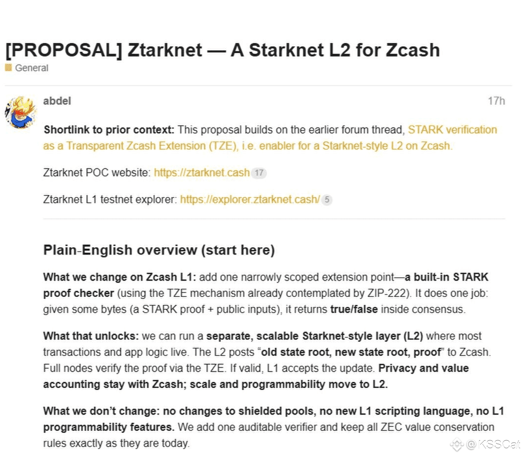 Ztarknet может сделать Zcash масштабируемым без изменения его сути. Один минимальный аудируемый порт — и вся сложная логика уходит во внешний слой, тогда как L1 остается надежной приватной основой.