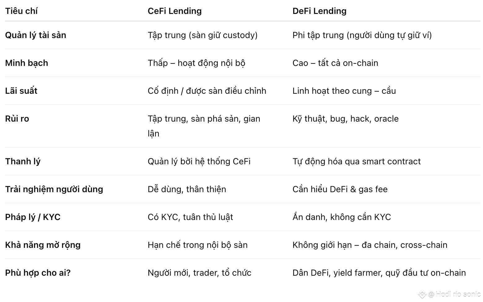 *DeFi Lending – phi tập trung, minh bạch, nhưng rủi ro kỹ thuật cao.