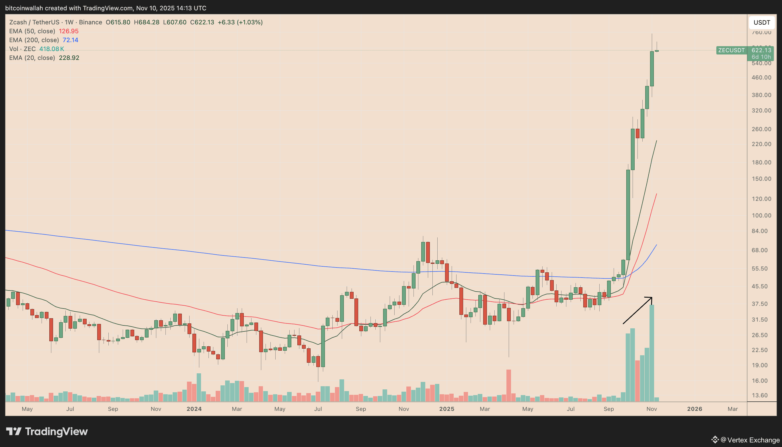 Zcash aún puede subir hasta los USD 900-USD 1.000 si se mantiene el avance parabólico.