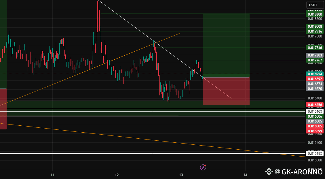 If buyers maintain control above 0.0168, the next wave could target 0.0183 resistance with strong volume confirmation.