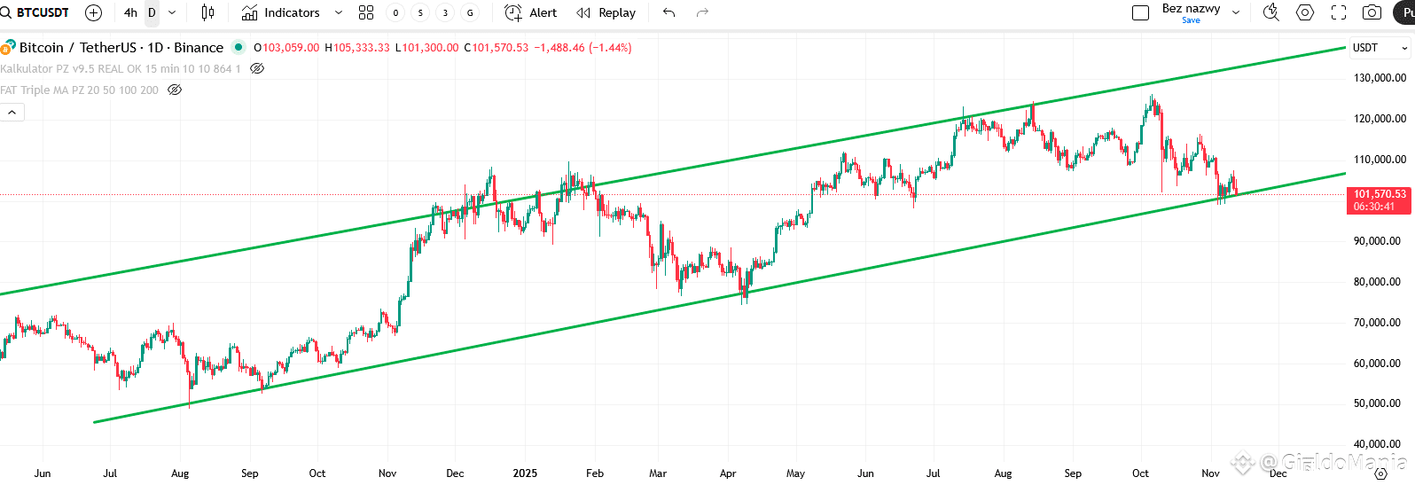 Faktem jest, że Bitcoin spadł około 20% ze szczytu. Ze 126 tysięcy dolarów w październiku do okolic stu tysięcy w listopadzie. Teoretycznie zamknięcie poniżej 50 i 200 dniowej średniej może oznaczać początek bessy. Na szczęście są także fakty świadczące przeciwko tej teorii - jak na razie MA 50 nie przecięło MA 200 i nie utworzyło death cross.