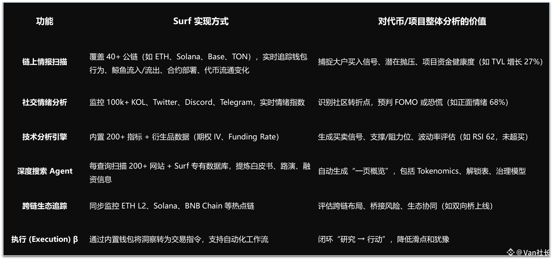 在 2025 年币圈,Surf 是唯一能提供“整体分析闭环”的 AI,帮助你从信息海洋中提炼 Alpha信息,而非淹没其中。