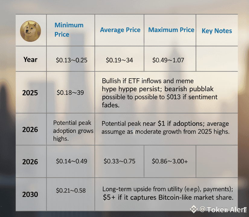Dogecoin, the original meme coin launched in 2013, has evolved from a joke cryptocurrency into a top-10 asset by market cap (currently around $24-30 billion as of November 2025, with DOGE trading near $0.16-$0.18). Its price is highly volatile, driven more by social sentiment than fundamentals, but recent developments like potential ETF approvals and Elon Musk's influence keep it in the spotlight. Below, I'll break down future price predictions based on aggregated analyst forecasts, then explain the key factors that could propel DOGE to $0.50 (a ~175-200% increase from current levels, implying a ~$70-75 billion market cap).Future Price Predictions (2025-2030)Predictions vary widely due to DOGE's speculative nature—conservative models focus on technicals and historical volatility, while bullish ones factor in hype and adoption. Here's a summary table of average forecasts from sources like CoinCodex, Benzinga, Changelly, CoinPedia, and others: