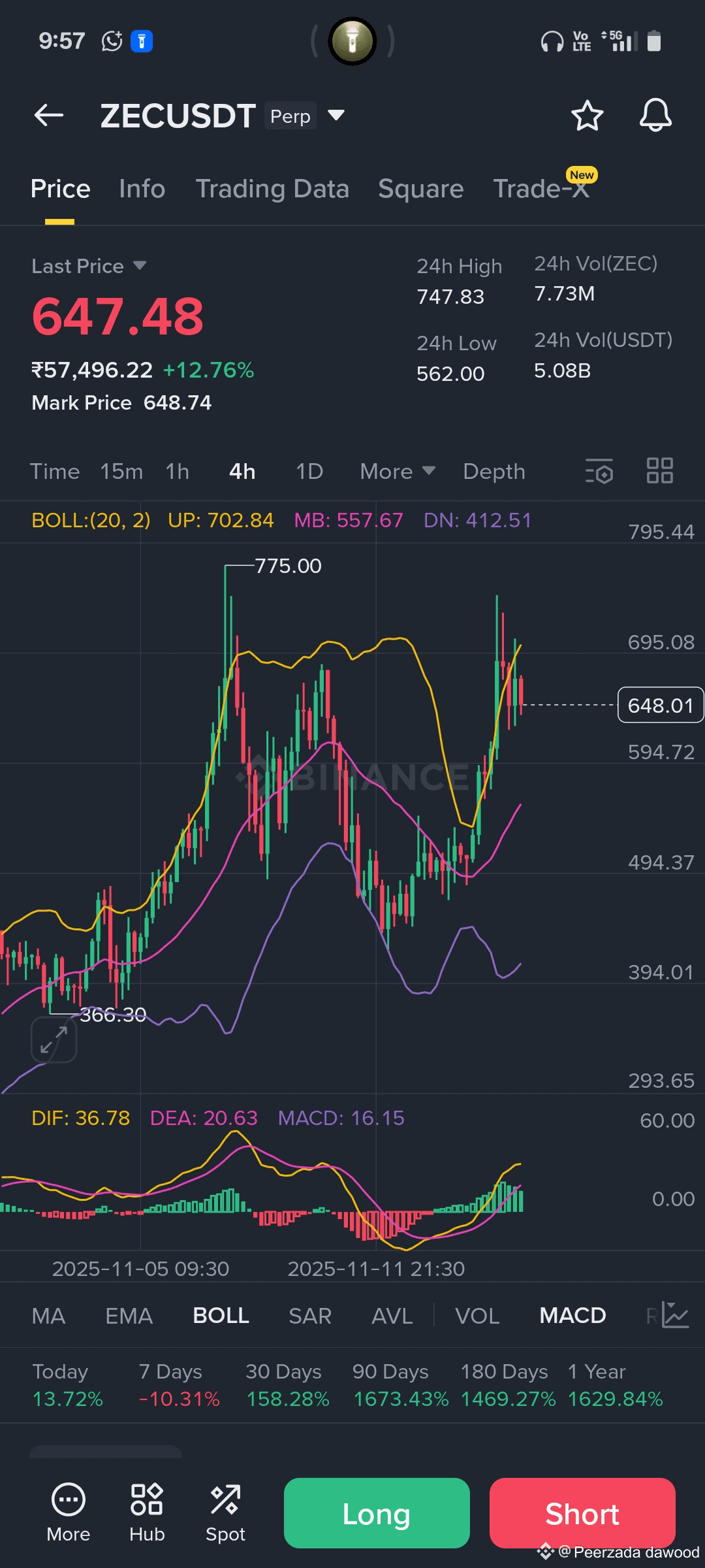 The chart shows strong bullish momentum of $ZEC over the past few days, but the price is currently at a high-risk location based on key indicators: