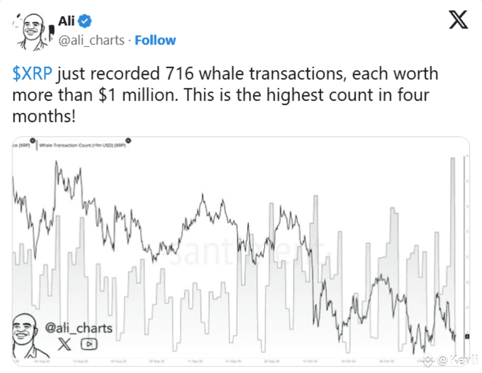 $XRP is on-chain activity just spiked 🔥 — 716 transactions over $1M each, the highest in 4 months! Large wallets are clearly positioning for big moves, according to analyst Ali Martinez.