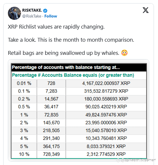 The $XRP rich list has shifted rapidly in recent weeks, surprising many who closely monitor whale behavior on the network.