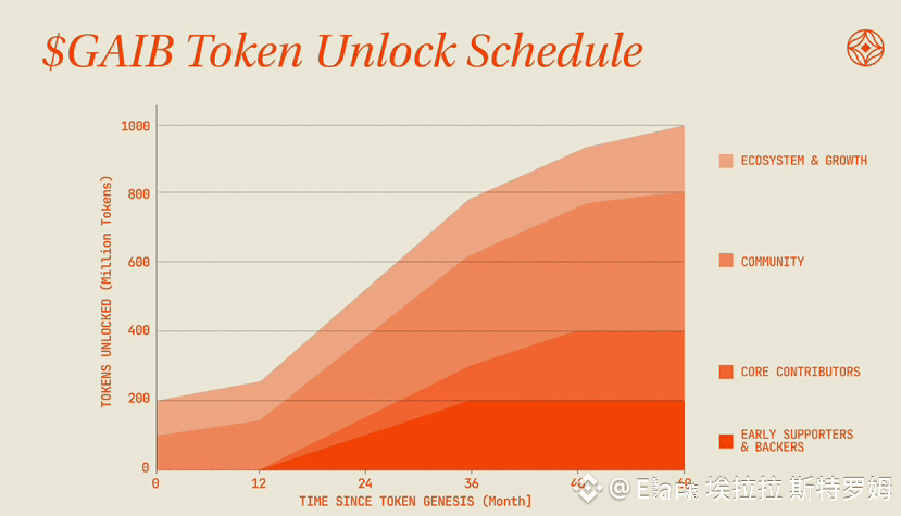 用数据支持。截至今天2025年11月20日GAIB价格约为零点一六美元市值接近三千五百万美元二十四小时交易量超过一千一百万。总供应上限为 十亿代币推出时流通约二十 درصد。四十百分之分配给社区包括早期参与者的空投这对建立忠诚度很重要。这里是代币分配的可视化以便了解结构。