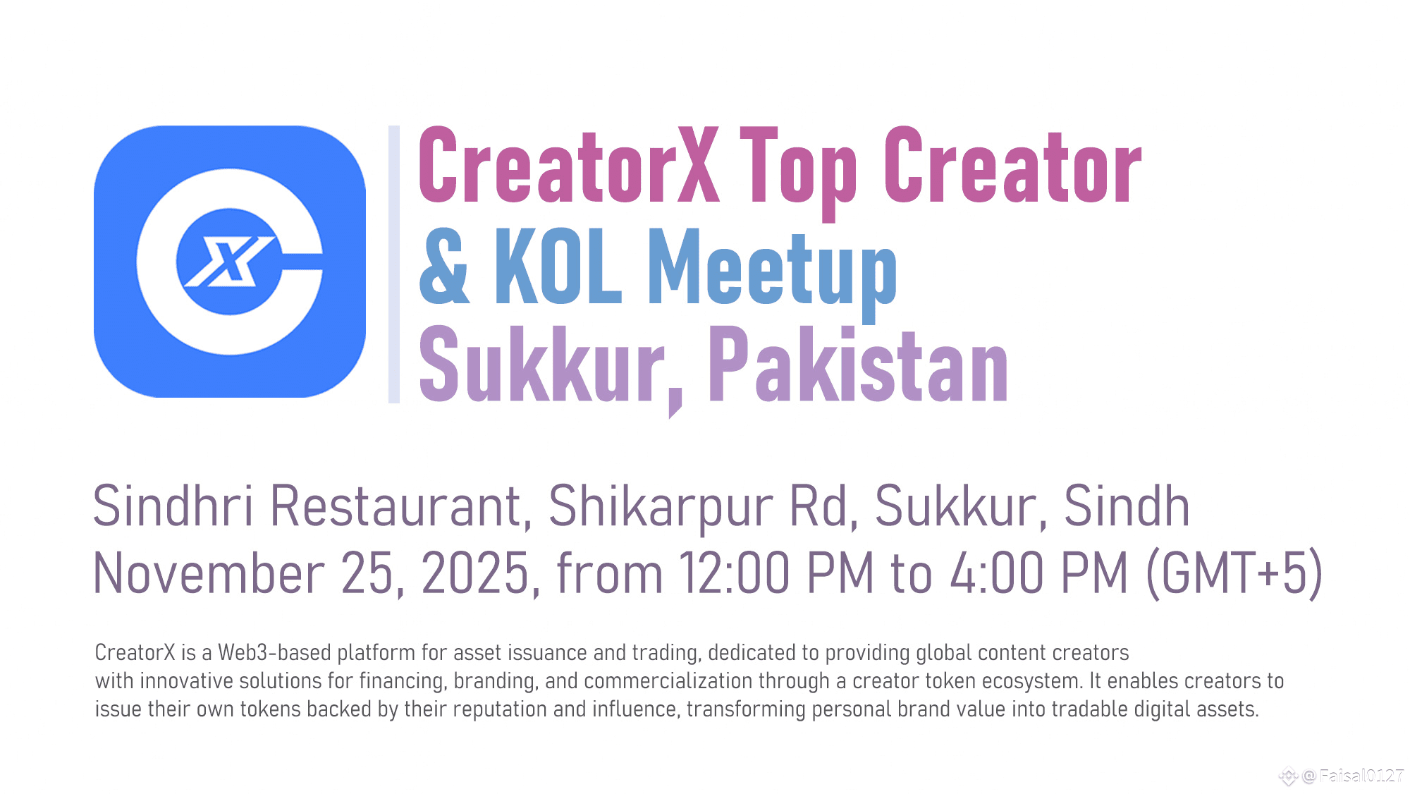 🌐 Join the CreatorX Web3 Creator Economy Meetup – CreatorX Event Sukkur, Sindh