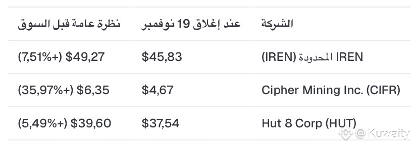 ارتفعت أسهم تعدين بيتكوين مثل Cipher Mining وIREN وHut 8 في التداول قبل افتتاح السوق بعد التوجيهات القوية لشركة Nvidia. عكس الارتفاع اعترافًا متزايدًا بدور المعدنين المتنامي في بنية الذكاء الاصطناعي والحوسبة عالية الأداء.