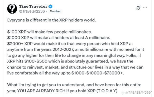 $XRP holders often hear mixed predictions about the asset’s future. Some analysts take a careful approach, while others push bold targets to motivate long-term commitment. Time Traveler (@Traveler2236), a crypto enthusiast on X, belongs to that second group.
