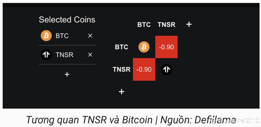Tensor cũng là một cái tên đáng chú ý khi Bitcoin có nguy cơ giảm dưới 80.000 USD, nhờ mức tương quan âm ngắn hạn mạnh mẽ với BTC (hệ số Pearson 7 ngày gần –0,90). Điều này cho thấy TNSR thường tăng giá khi Bitcoin lao dốc.