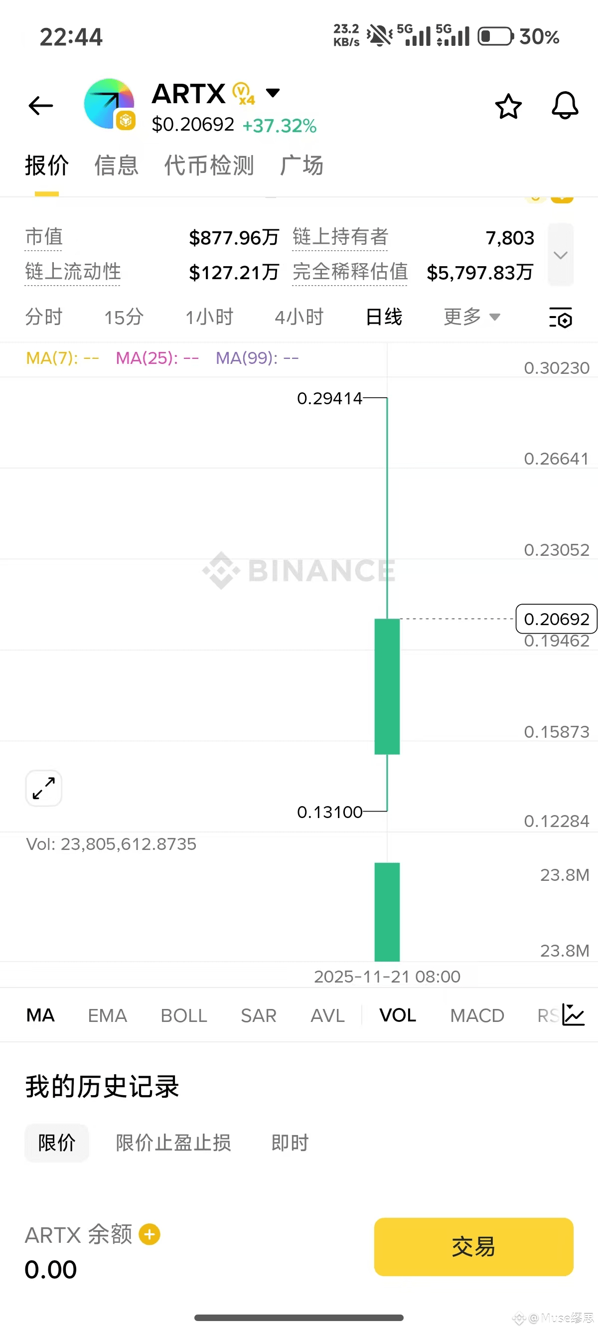 这不是偶然的“昙花一现”:从数据看,ARTX当前市值超877万美元,链上流动性稳定在127万级别,更有近8000名链上持有者的共识支撑。在多数资产被恐慌情绪裹挟时,它能走出独立行情,恰恰印证了市场对其价值逻辑的认可——要么是底层生态的落地进展给出了信心,要么是资金在极端行情里找到了真正的“避险型价值标的”。