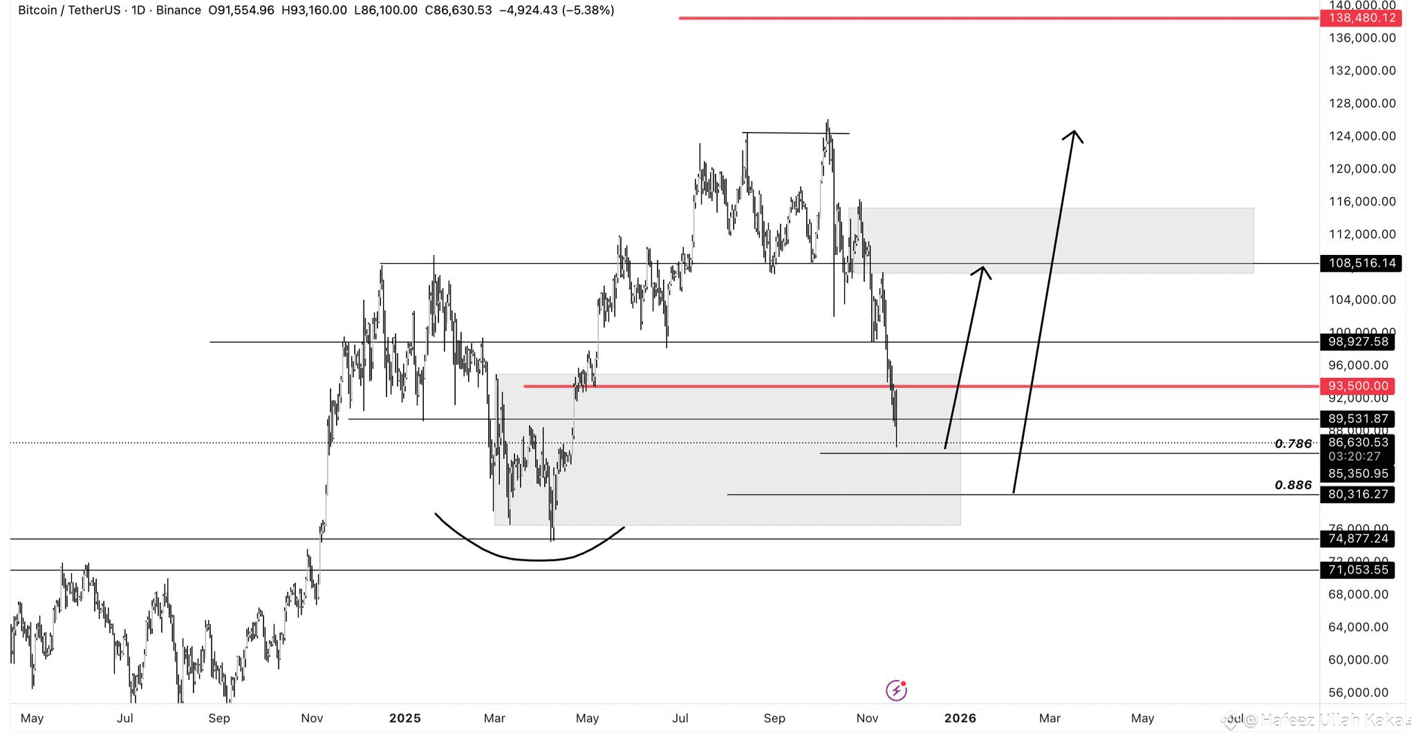 Key Support Zone: The area around $86,630 and the gray support zone on the chart is the most important battleground right now. If bulls can defend this level, we might see a bounce.