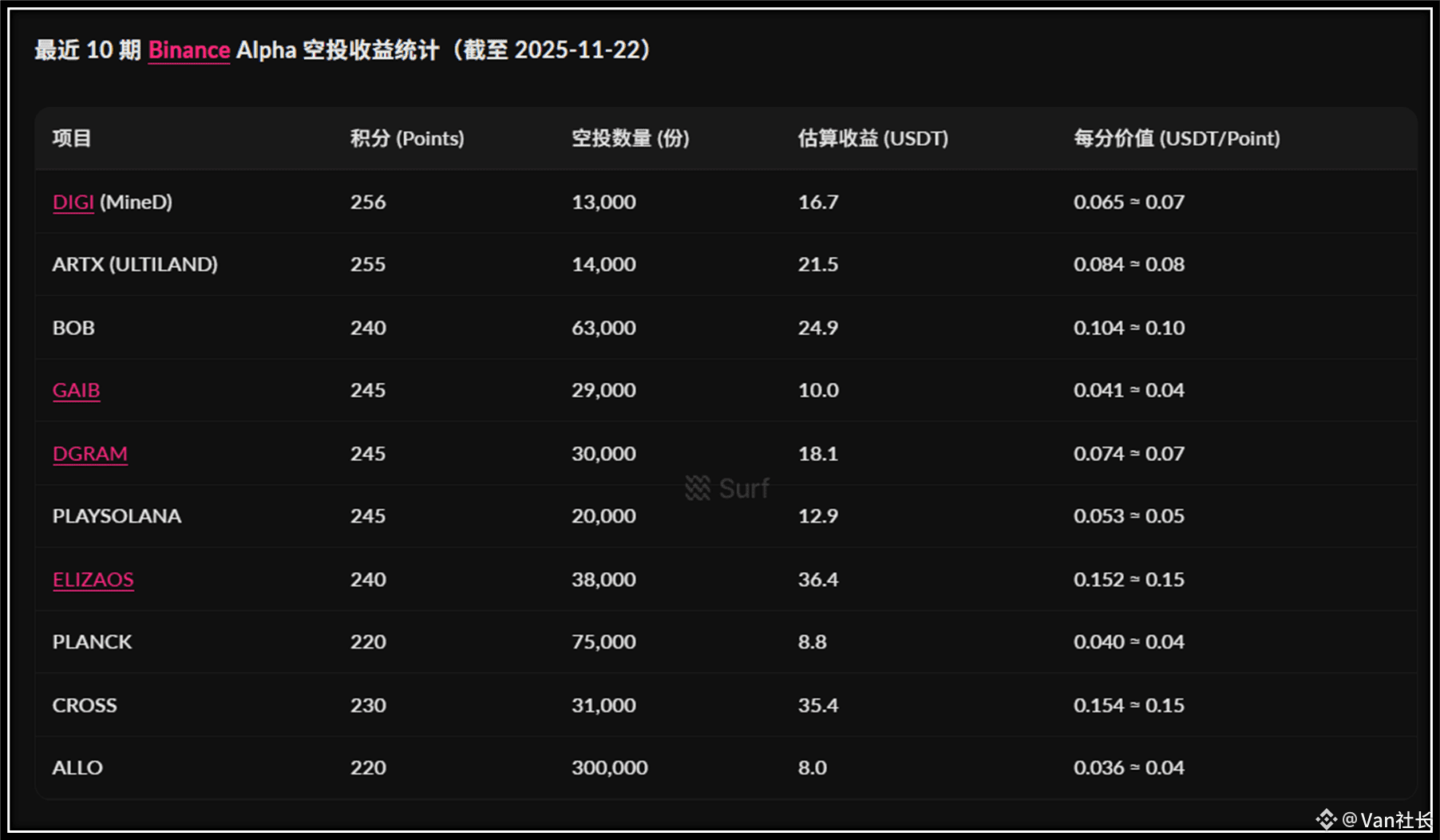 下面是Surf AI基于当前市场情况的一个Alpha 积分积累成本效率估算对比: