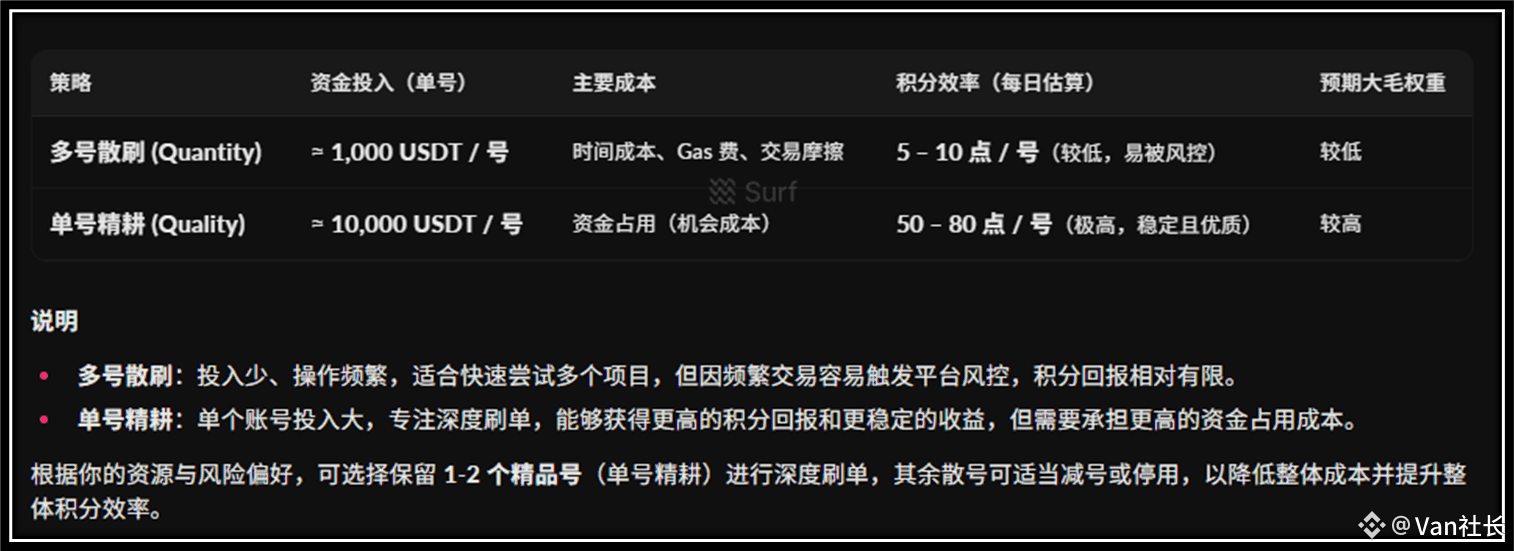 多号模式是低总资本、高摩擦,虽然号多但积分总量低且波动大;单号模式是高总资本、低摩擦,积分稳定且抗风险能力强,长期价值极高。