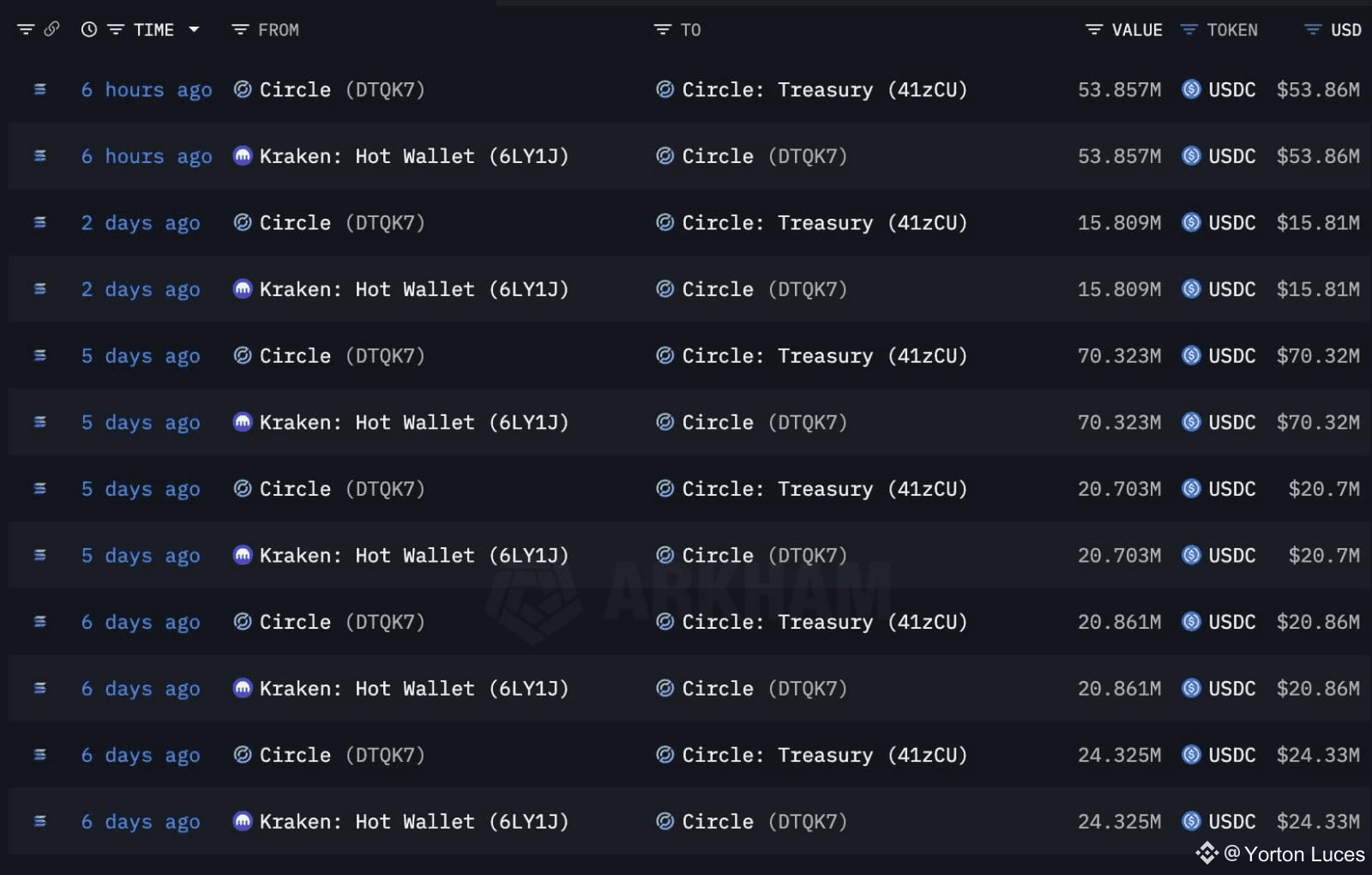 🟪 Kraken reenvía → 53M, 15M, 70M, 20M, 20M, 24M, 23M…