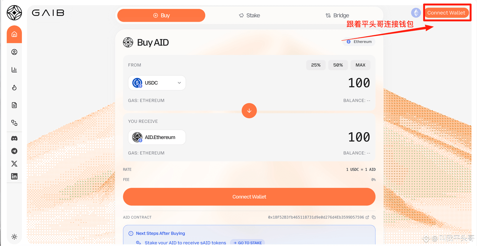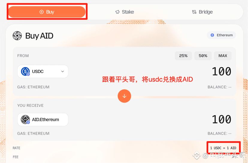 2.将usdc换成AID,最低质押10u就行!