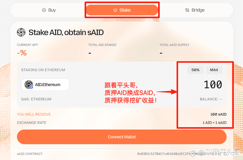 3.将AID质押兑换成SAID,获得质押挖矿奖励!