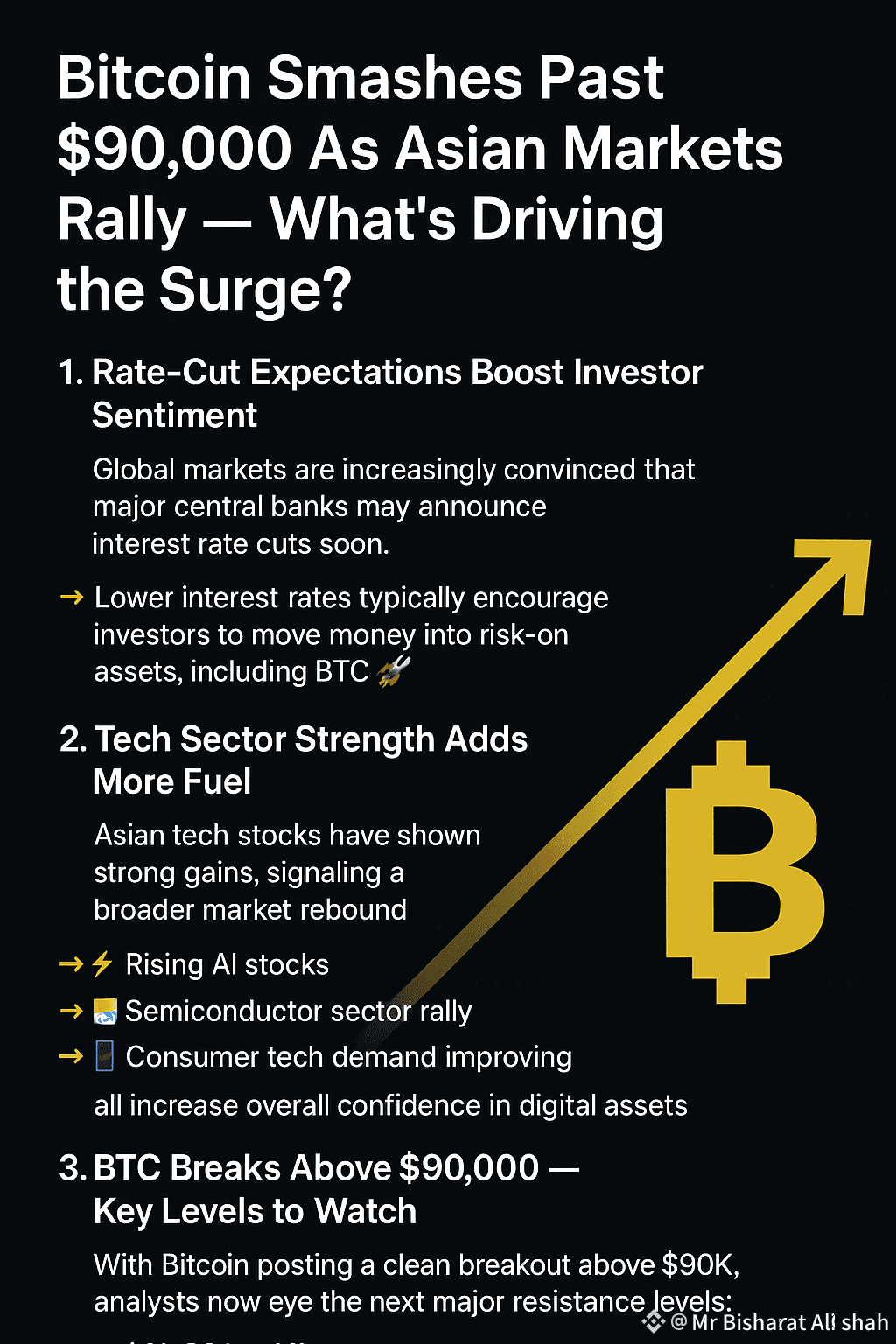 Bitcoin opened the Asian trading session with a powerful breakout above $90,000, marking another strong bullish signal in the global crypto market.