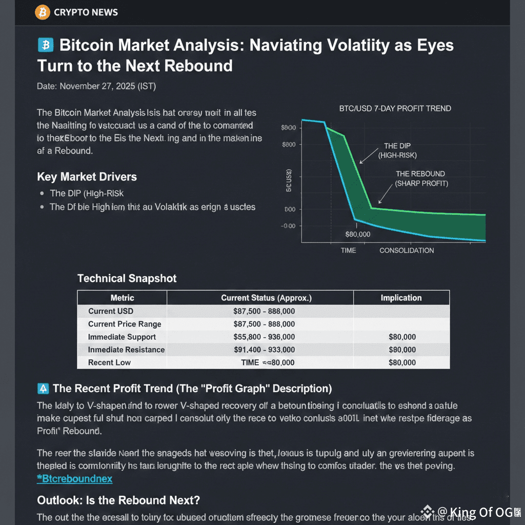 As of today, #NovemberProfits 27, 2025, #BitcoinETFs is trading around the $87,500 - $88,000 range. This stability follows a notable rebound from recent lows near $80,000, which many analysts marked as a critical support zone. The current market action suggests a shift from aggressive selling to a more cautious, "de-risking" phase.