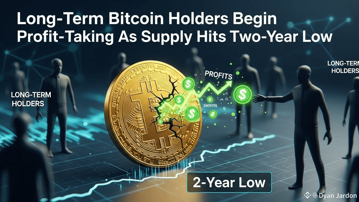 Long-term Bitcoin holders are starting to take profits, moving BTC to exchanges, even as the overall exchange supply hits a two-year low. This dual trend indicates a complex market dynamic where distribution by some long-term investors is balancing against continued overall accumulation.#BitcoinHolders #OnChainData #CryptoMarket $BTC