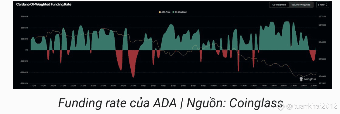 Chỉ báo này đã chuyển sang mức dương, đạt 0,0014% trong ngày thứ Ba – một dấu hiệu cho thấy phe Long đang trả phí cho phe Short. Lịch sử cũng chứng minh rằng mỗi khi funding rate đảo chiều từ âm sang dương, giá ADA thường có xu hướng bật tăng mạnh mẽ ngay sau đó.