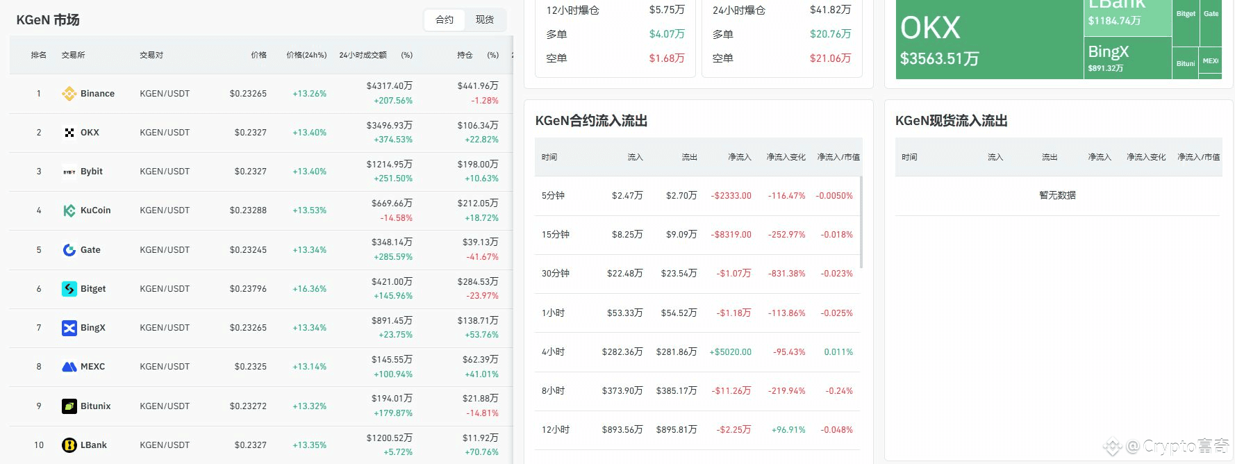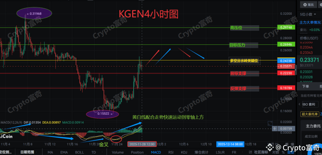 兄弟们,我是富奇!刚扒完$KGEN 的三张关键图表,发现一个惊人的信号——主力正在玩一场"明修栈道暗度陈仓"的把戏!