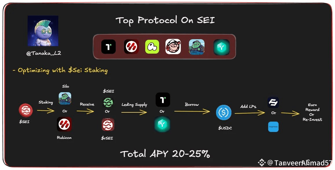 • Stake SEI → rSEI through @RubiconStaking (base yield ~5.4%).