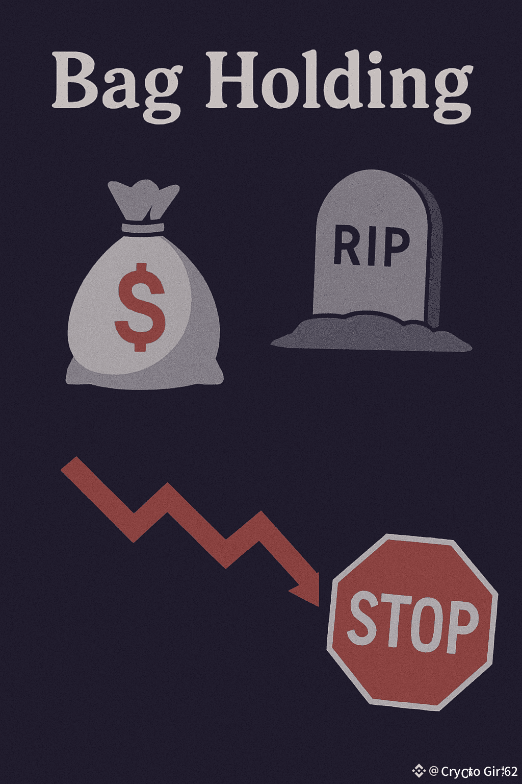 You buy high, the price dumps, and instead of accepting the loss you think:“If I sell now, I lose. Let me wait a bit…”That moment—you officially become a Bag Holder.