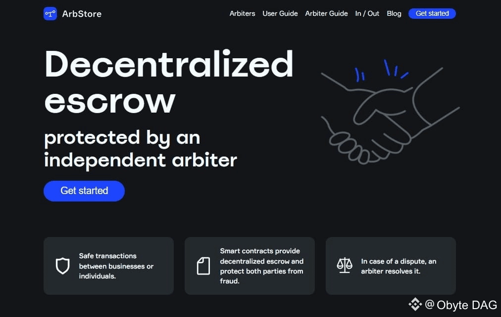 Arbstore is a platform that facilitates decentralized escrow through the use of smart contracts powered by Obyte. It was officially launched in 2023 by a group of entrepreneurs and lawyers to provide a secure way for businesses or individuals to engage in trustless transactions —especially in international trade. Users only need to download the Obyte wallet app, acquire some cryptocurrencies, select a professional arbiter, and deploy the human-readable contract with arbitration from the same wallet.