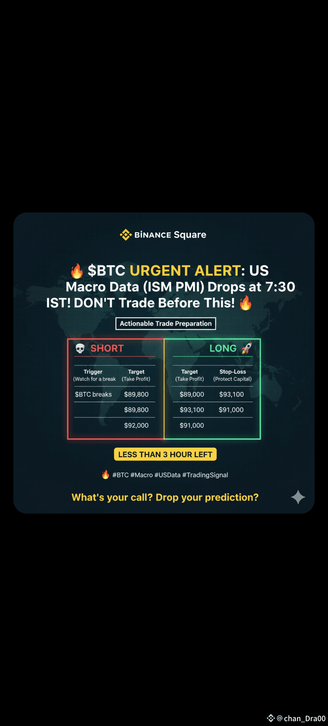 Bull Run (Weak Data): If the ISM number is weak (below 48.0), it fuels certainty about Fed rate cuts. This is the most bullish outcome and could launch $BTC past $93,000 in minutes!