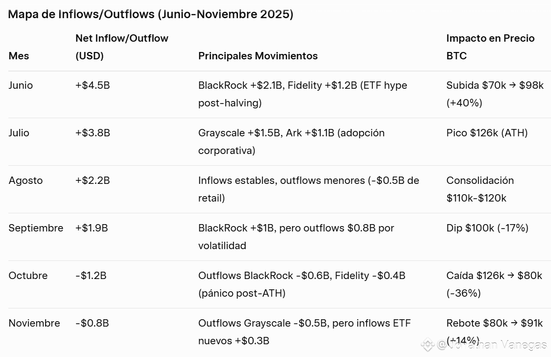 No es FUD, es matemática fría: mira los números de ETF (el principal termómetro institucional) de los últimos 6 meses, y verás que el neto es +$12.4B. Sí, octubre y noviembre tuvieron outflows (-$2B), pero junio-julio metieron +$8.3B. Eso no es “ricos saliendo” —es el ciclo normal de un mercado maduro, donde los grandes jugadores ajustan posiciones antes de cargar para el siguiente tramo alcista. 💪