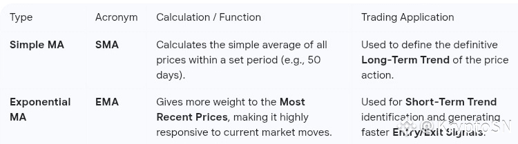 MAs help smooth out price action by averaging the price over a set period, which removes market Noise and allows us to see the true Trend direction clearly.