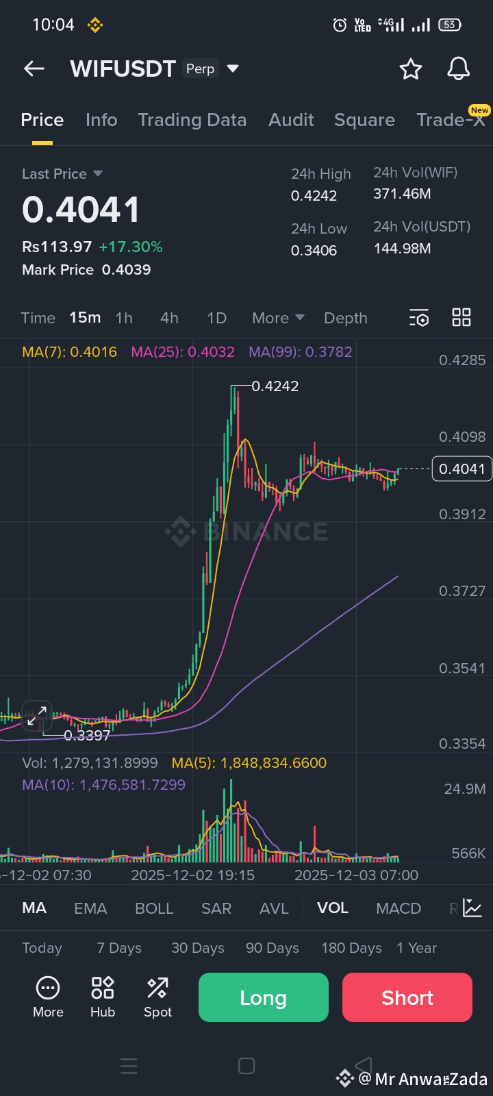 WIF has just completed a powerful impulsive rally, pushing the price up to 0.4242, its 24-hour high. After the sharp pump, the market is now consolidating above the 0.39–0.40 support zone, showing signs of stability and controlled cooling.