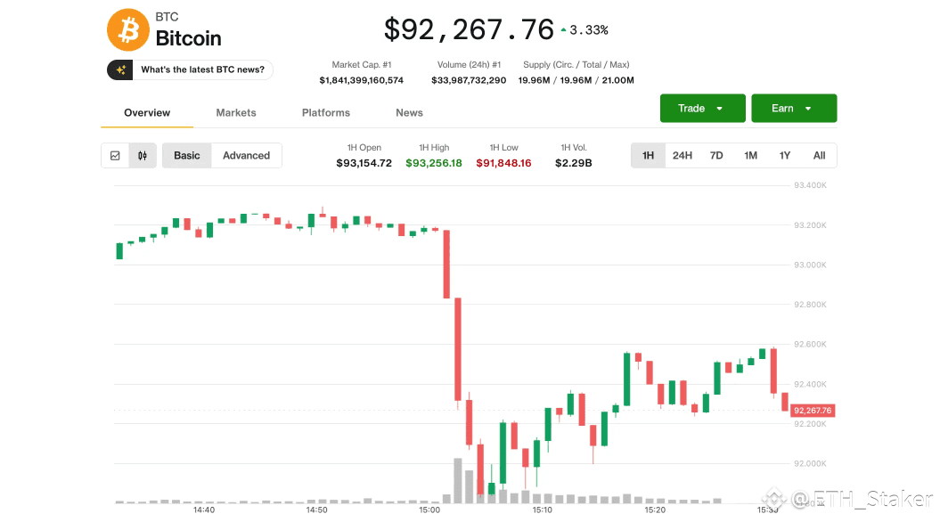 Bitcoin fell back to $92,000 Wednesday morning alongside a quick pullback in the tech sector thanks to report that Microsoft is lowering expectations for the sale of its AI agents.