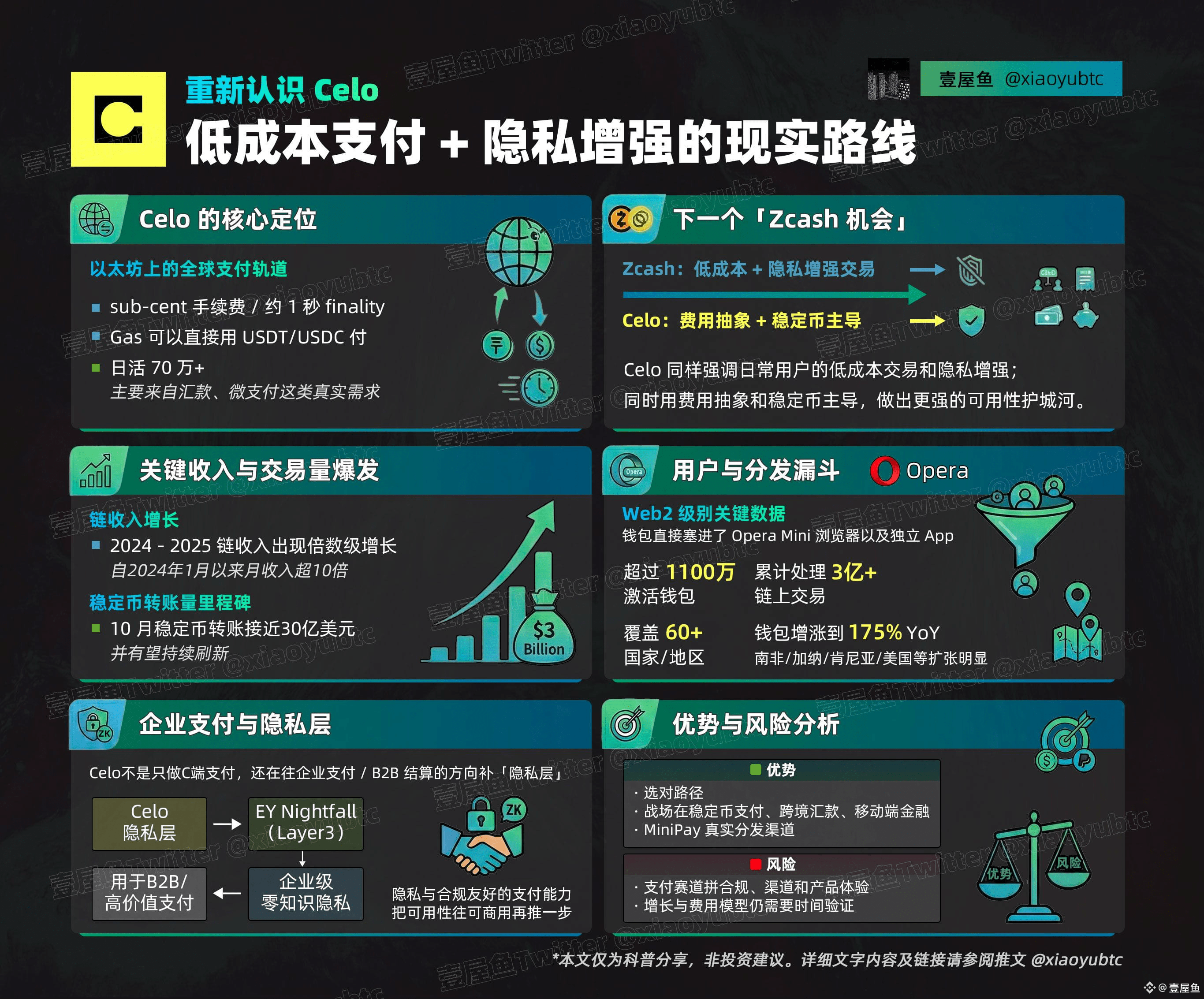 Celo 直接把战场放在稳定币支付、跨境汇款、移动端金融这些更硬的需求上,并且用 MiniPay 这种真实分发渠道把更多的人引进场。