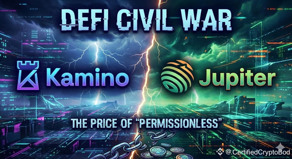 Drama in the Solana ecosystem! 🍿 Kamino Finance (Lending Protocol) manually blacklisted Jupiter's new Refinance tool, stopping users from moving their loans.