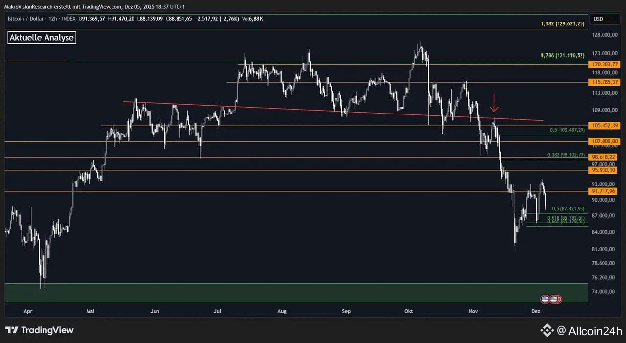 MakroVision lưu ý rằng vùng 87.400 – 88.700 USD đang đóng vai trò “cụm hỗ trợ kỹ thuật” quan trọng, tập trung nhiều mốc Fibonacci từ nhịp giảm trước đó.