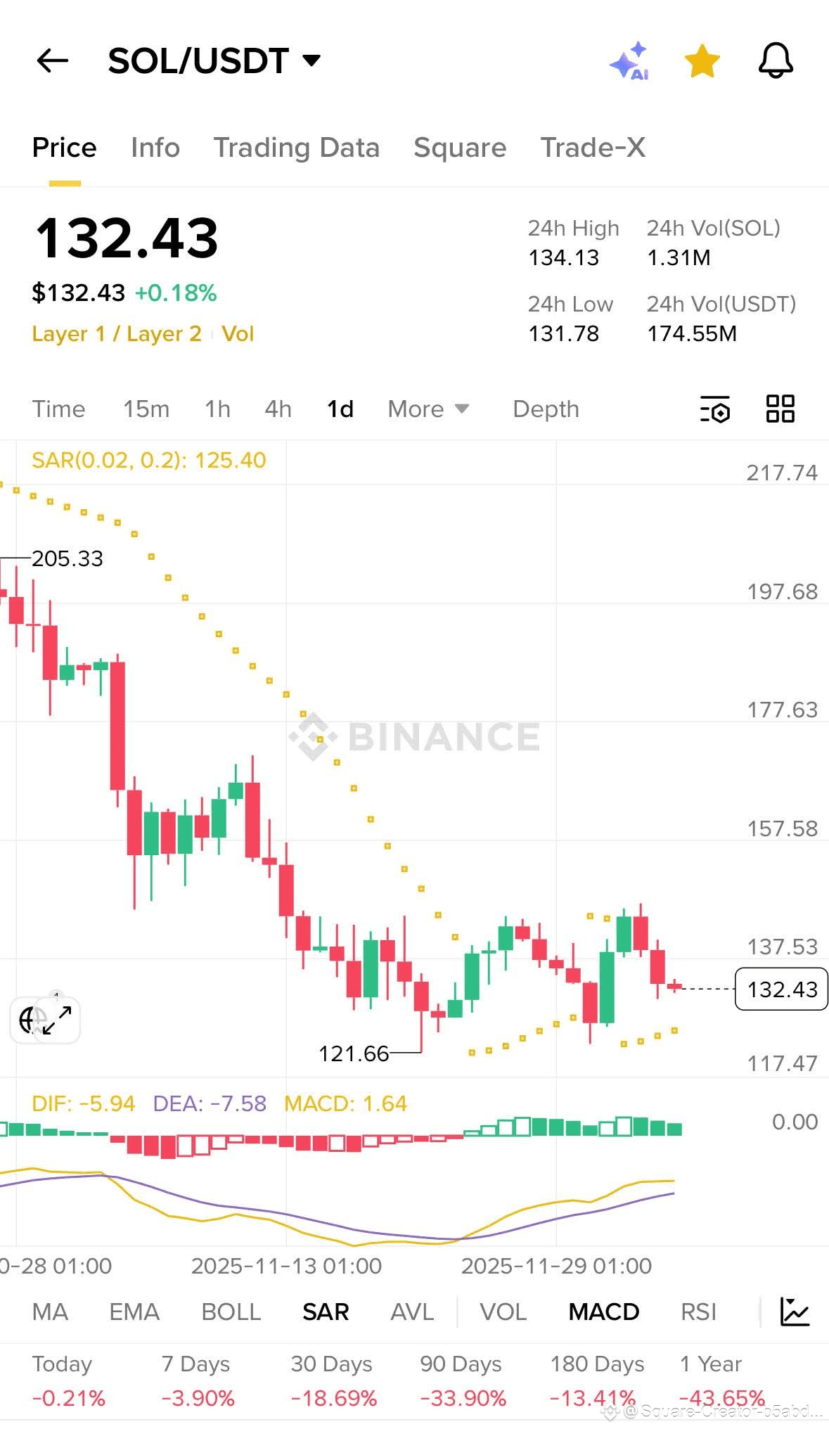 يتداول SOL عند 132.43$ داخل قناة هابطة على إطار 1H، مقترباً من أهم منطقة دعم عند 130–131$… وهي المنطقة الأخيرة للسيولة قبل أي حركة قوية