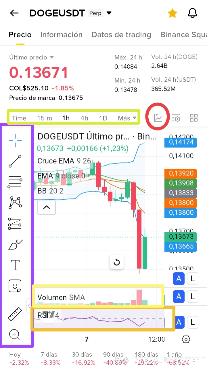 ¡Guía COMPLETA para un trader novato sobre cómo configurar el gráfico de Futuros en Binance + TradingView, usar indicadores, timeframes, hacer análisis técnico y fundamental con el ejemplo real de DOGEUSDT que estás viendo! $DOGE