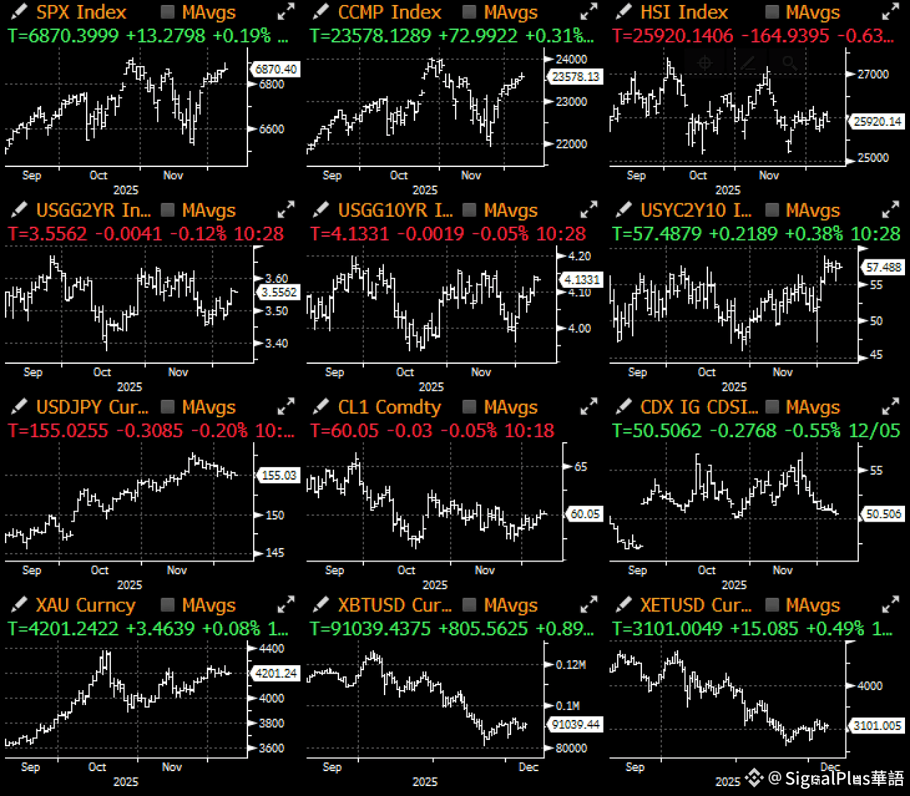 另一方面,由于特朗普总统强烈暗示凯文·哈西特可能成为下一任美联储主席,这很可能是市场预期的普遍结果,意味著从明年6月开始,一位立场更”宽松”的美联储主席将掌舵。因此,中期来看,1) 美元走弱,2) 通胀走高,3) 美债收益率曲线变陡,以及4) 资产价格上涨的观点,在已实现的宏观状况未发生重大变化的情况下,很可能保持不变。