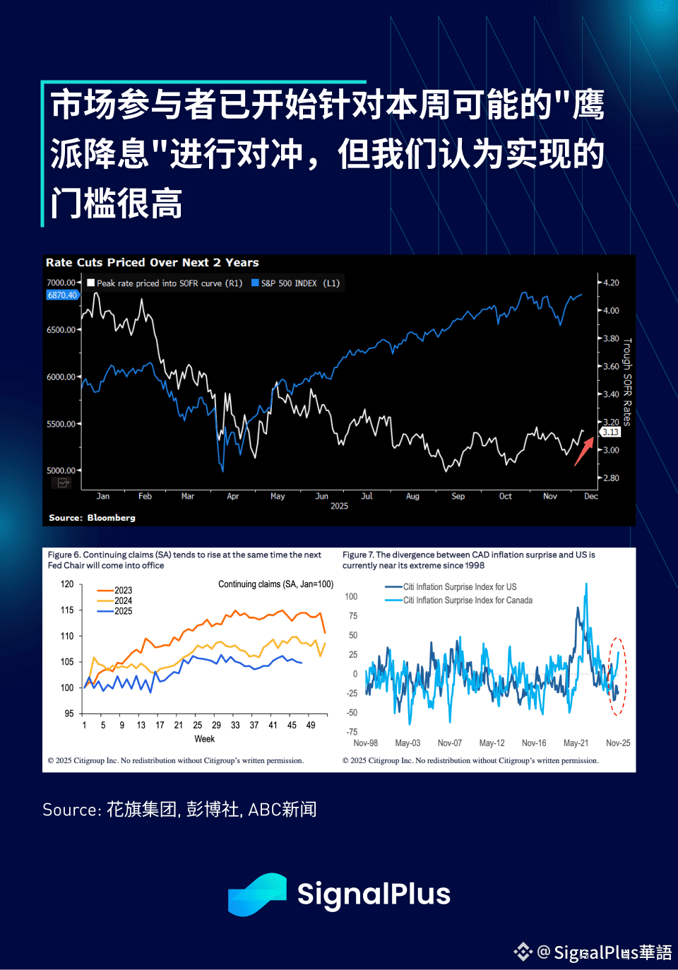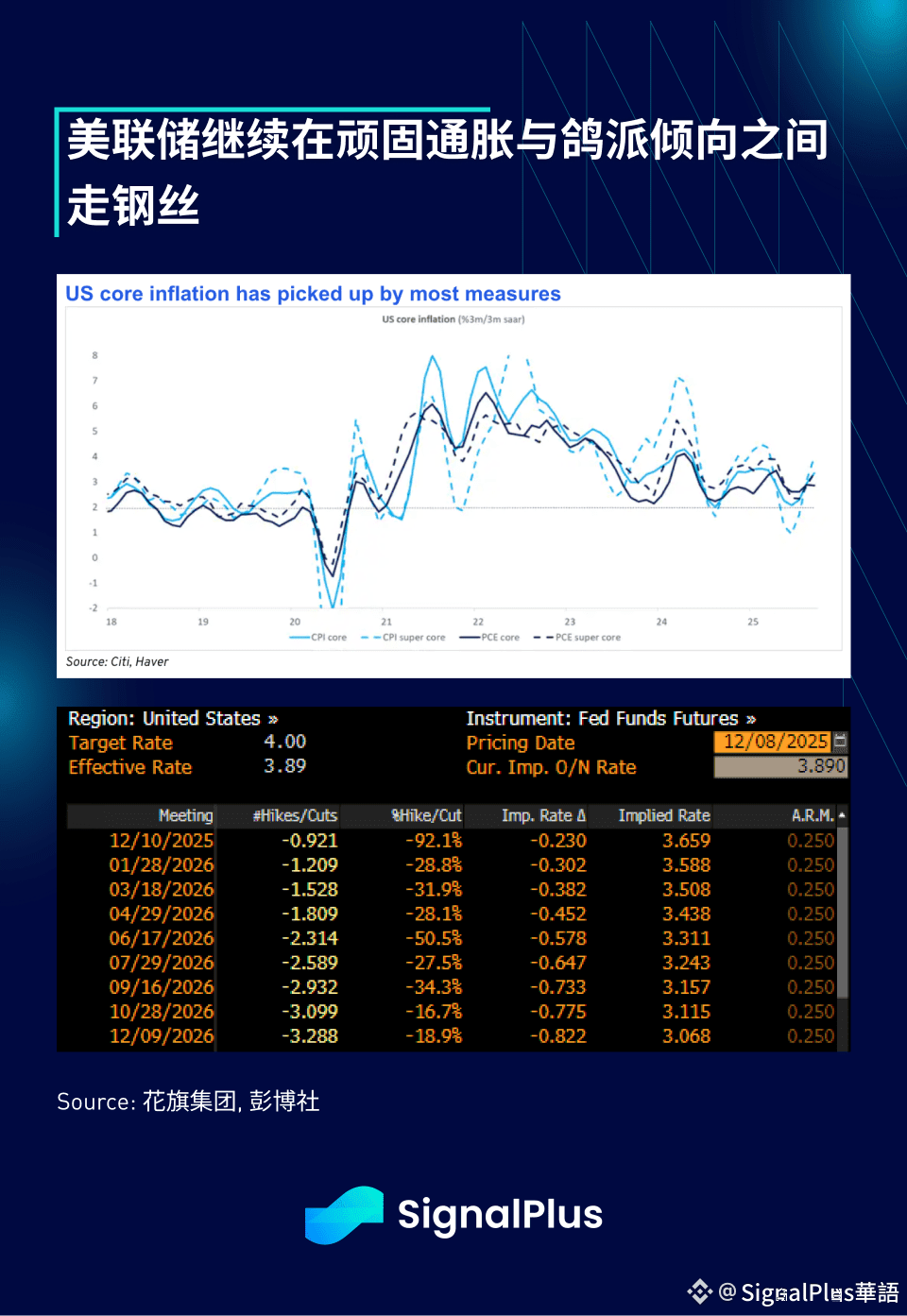 不出所料,美联储的鸽派立场开始遭遇一些市场阻力,市场参与者开始通过鲍威尔在问答环节的指引或对经济预测摘要(SEP)可能变化的预期,来为”鹰派降息”的可能性定价。要实现这一点,美联储需要在远期指引上表达得非常明确,例如将2026年的降息预期调整为一次或更少,但我们认为这种情况发生的概率较低。
