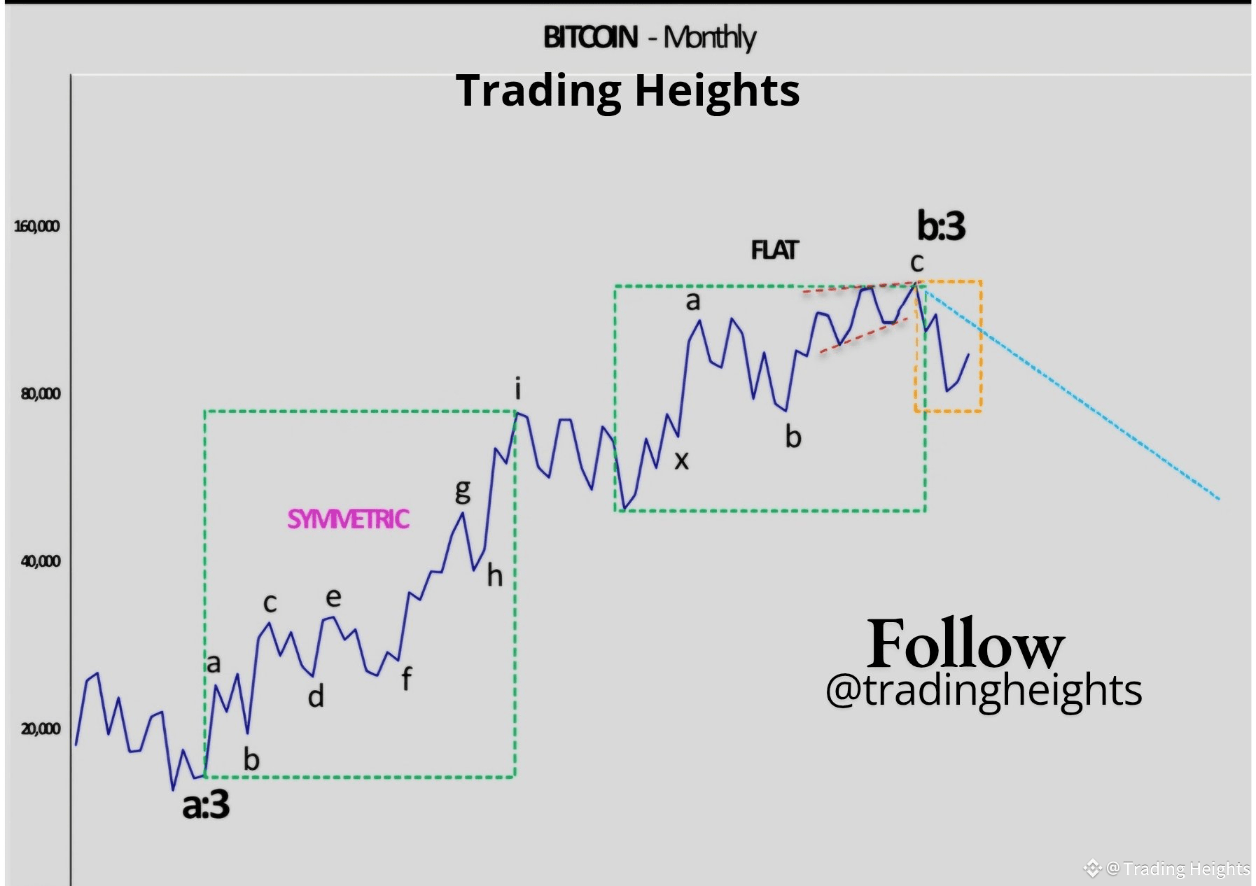 By analyzing the MONTHLY chart you shared โ Symmetric โ Flat โ Terminal rejection at wave-c โ the evidence now aligns with a long-term wave-b completion, meaning Bitcoin may have already topped for years.