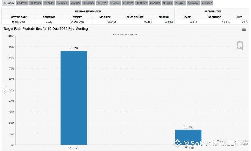 根据CME Group FedWatch的最新数据显示,市场对美联储在12月10日进行年内第三次降息的概率已高达86%,这与上周的预期持平,几乎确认了降息的到来。这种确定性让此前因降息前景不明朗而产生的短期市场波动得以平息。