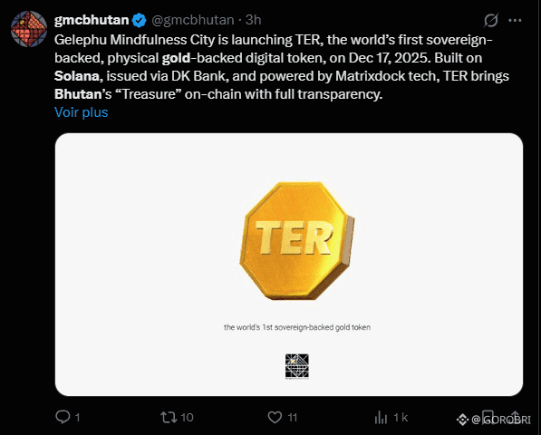 Le 12 décembre, les autorités de la Gelephu Mindfulness City, une région administrative spéciale du Bhoutan, ont annoncé dans la presse spécialisér le lancement de TER, un jeton adossé à de l’or.