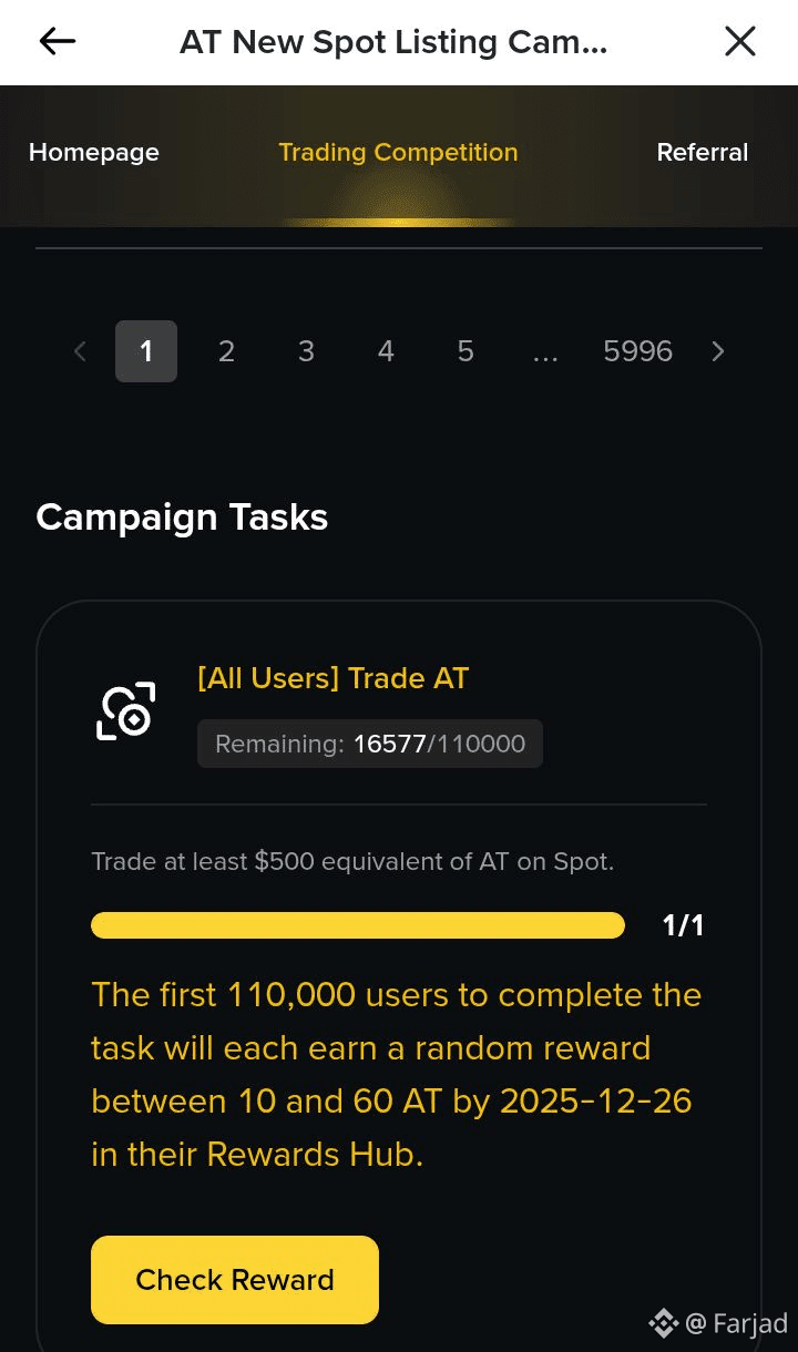 "🚨 Binance $AT NEW SPOT LISTING CAMPAIGN 🚨 16,500 seats still left! 😯🔥 I've already created a trading volume of 4,000+ 🤔 Should I push more volume or is this already enough to grab good rewards? 💬 Anyone else participating in this campaign? 📈 Let's share and compare! #TradingCampaign #WriteToEarnUpgrade $AT