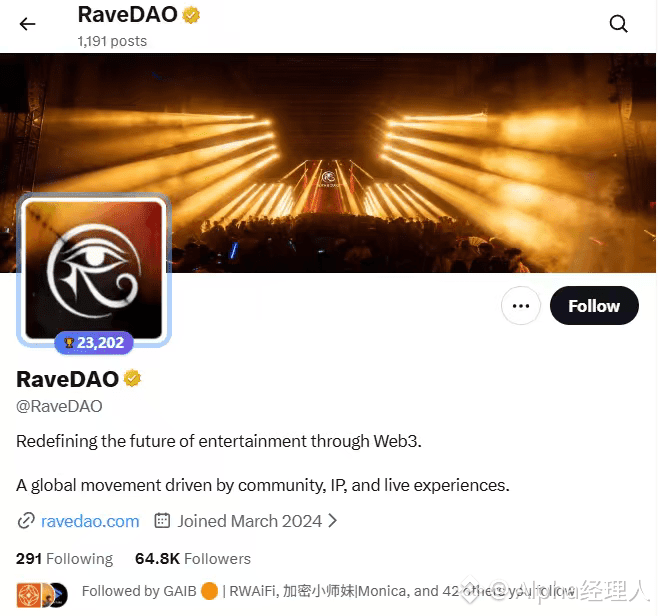 项目简介: RaveDAO 是由一群热爱音乐、加密、以及从科技行业转型为铁杆 Rave 文化爱好者组成的去中心化组织。