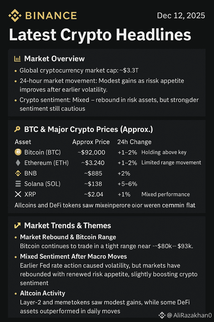 Here’s an updated Binance-style crypto market summary for December 12, 2025 based on the latest market data and trending crypto news: